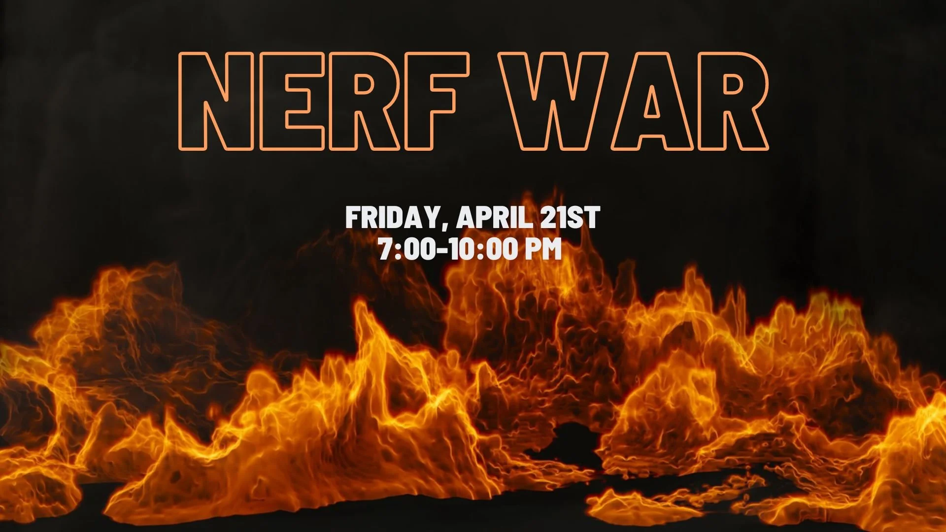Nerf War Friday, April 21, 2023 7:00 PM 10:00 PM 19:00 22:00 Google Calendar ICS Nerf War at Fern Creek! Bring a friend and have a Nerf War at the church!