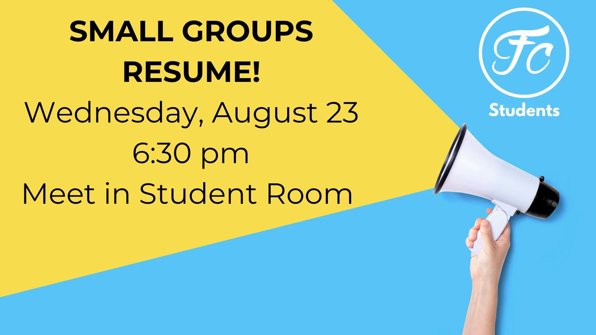 Wednesday Night Groups Resume! Wednesday, August 23, 2023 6:30 PM 7:30 PM 18:30 19:30 Google Calendar ICS With students heading back to school, our Wednesday night programming resumes church-wide and small groups kick off on Wednesday, August 23rd at 6:30. We’ll have small groups for guys and girls, middle schoolers and high schoolers.