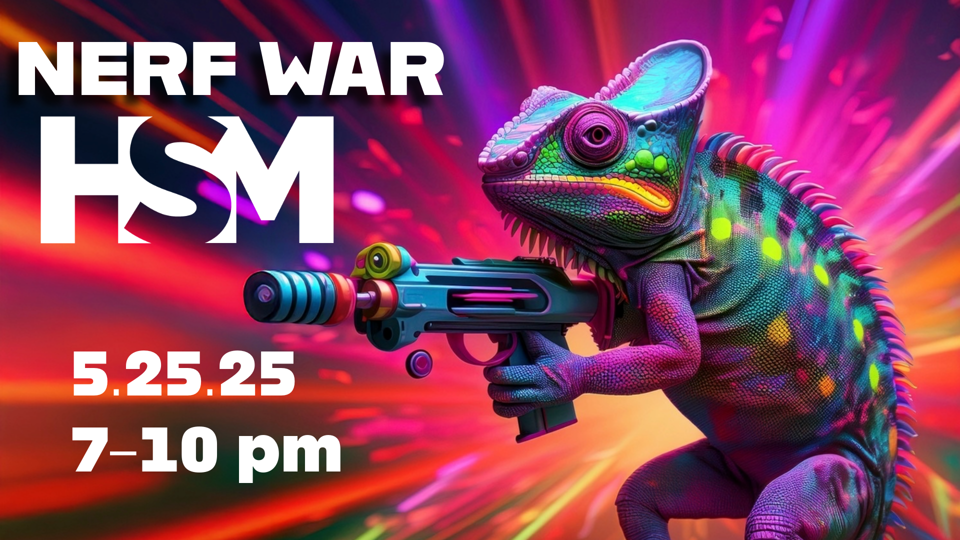 Nerf War at the Church! Sunday, May 25th from 7-10 pm. Bring your arsenal, bring a friend, we are going to have a blast!